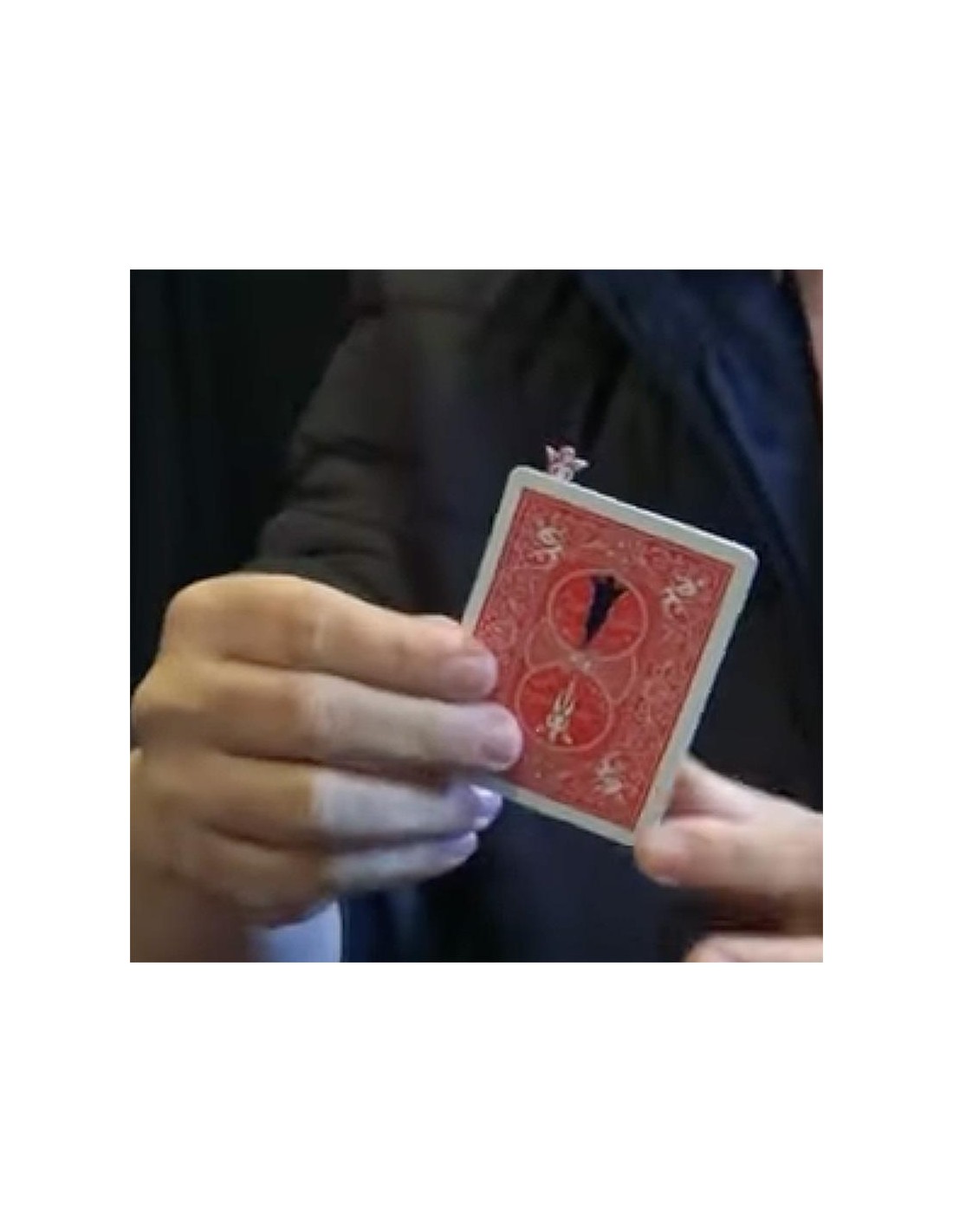 Il mago mostra il dorso di una carta. Dopo un attimo uno degli angeli in bicicletta, stampato sul dorso della carta Bicycle, sparisce dal centro del dorso per comparire in cima al bordo superiore! Il mago prova a prenderlo con le dita, ma l'angelo scappa sul lato opposto del bordo!
