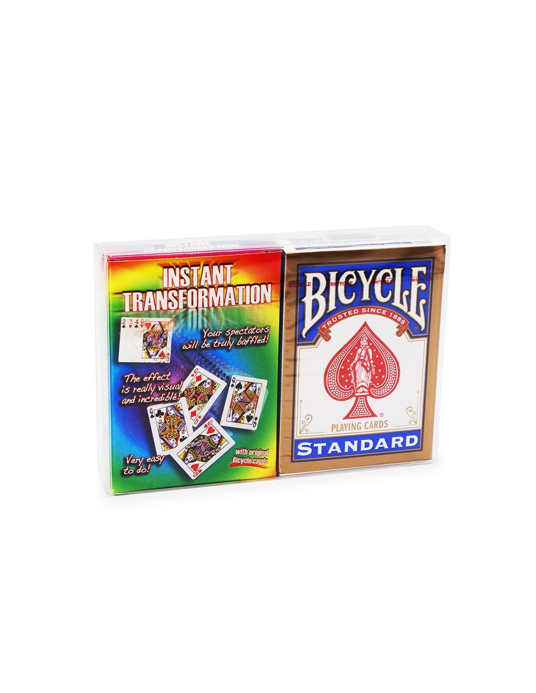 <div> Il mago estrae dal mazzo quattro carte. Le mostra e afferma che la più alta, come valore, è una regina. Quindi fa un gesto magico e lancia le carte sul tavolo che A VISTA si trasformeranno nelle quattro regine!</div><div> </div><div> Un effetto decisamente incredibile!</div><div> </div><div> • Lascerete a bocca aperta i vostri spettatori.</div><div> • L’effetto è sbalorditivo e semplicissimo da fare.</div><div> • Forniamo un mazzo di carte Bicycle, formato poker, ed il gimmick.</div>