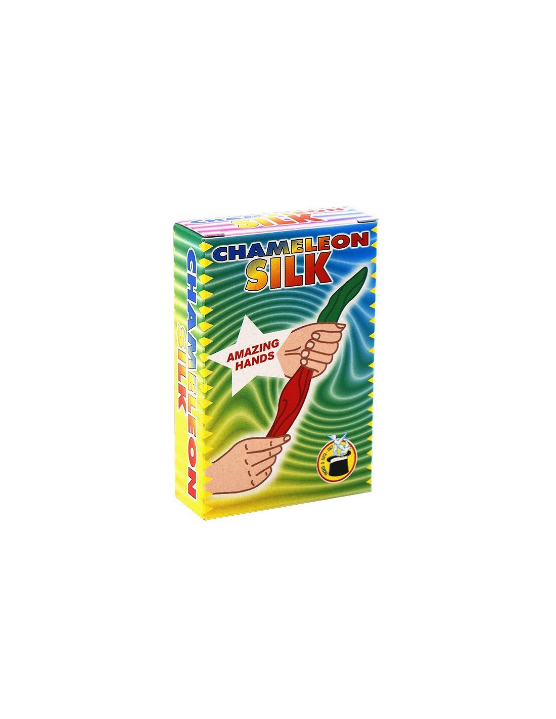 Il prestigiatore mostra la mano sinistra vuota, la chiude a pugno e vi introduce un foulard di colore giallo. Poi tira il foulard dal basso e magicamente questo cambierà colore diventando rosso.