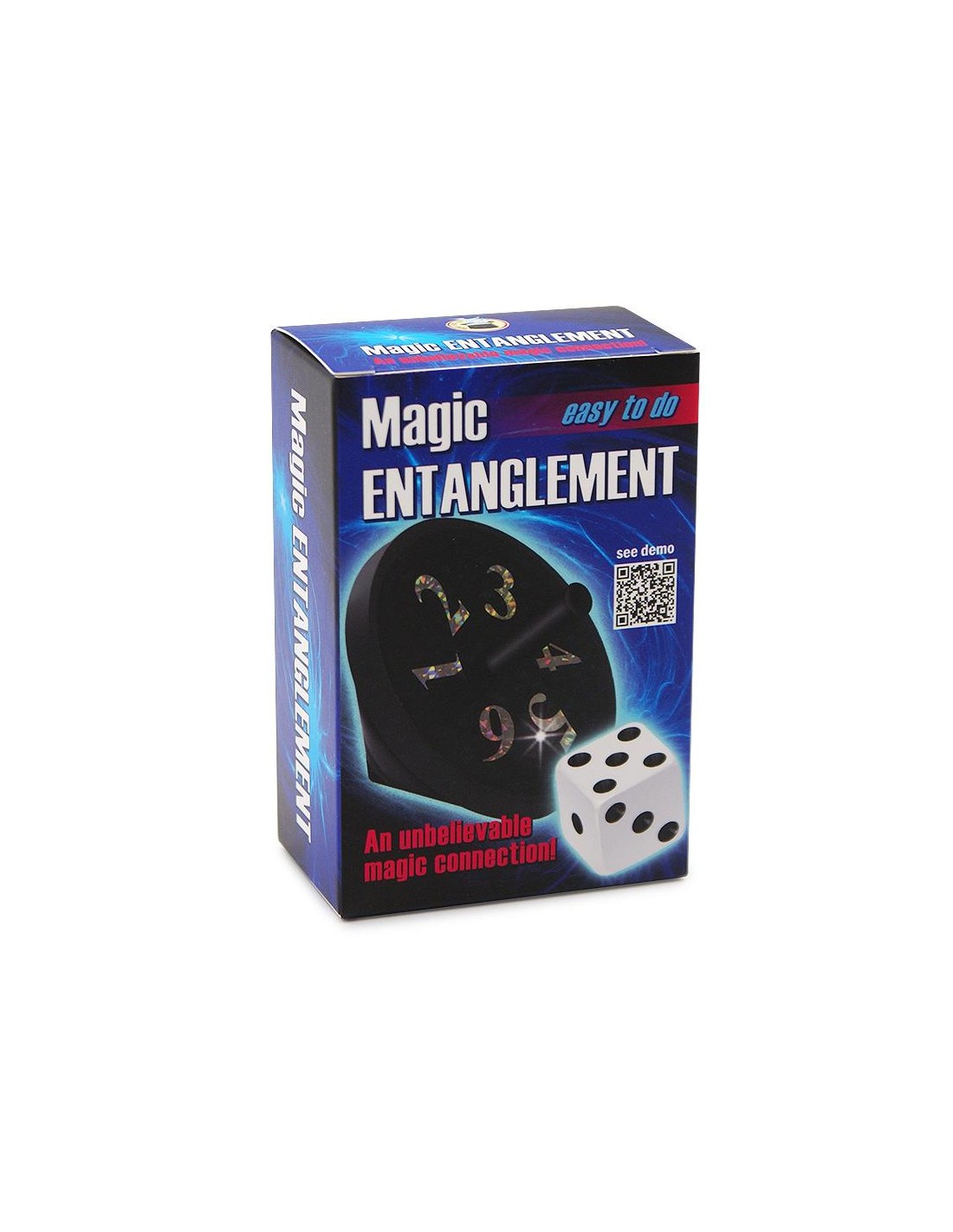 Il mago spiega che esiste un fenomeno interessante in fisica chiamato entanglement, attraverso il quale quando una coppia di fotoni o elettroni si aggrovigliano, rimangono connessi anche se separati da grandi distanze. Si offre dunque, di dare una rapida dimostrazione di come due oggetti separati, possano magicamente rimanere connessi. Mostra un dado e lo fa esaminare. Lo spettatore può anche lanciarlo un paio di volte per vedere che si tratta di un dado normale e ogni volta che viene lanciato esce un numero diverso. Quindi mostra una trottola che ha su di essa i numeri da uno a 6. Anche questa può essere fatta girare un paio di volte per mostrare che finisce sempre su numeri diversi. Ora il mago fa un gesto magico sui due oggetti, creando tra loro una connessione magica. Uno spettatore lancia il dado, e fa uscire per esempio il numero tre. La trottola viene poi fatta girare ed anche su di essa esce esattamente... lo stesso numero! L'esperimento può essere ripetuto, e il dado e la trottola continueranno a restare magicamente connessi, qualunque numero venga lanciato col dado!