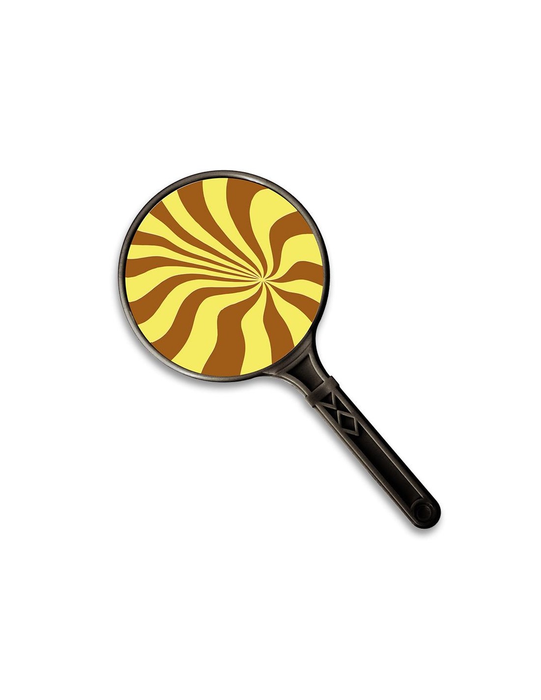 Il mago presenta una paletta con un ipnotico motivo geometrico. Quando la muove in senso circolare, si verifica un’illusione intrigante… una moneta sembra apparire sulla sua superficie! Poi, l’illusione diventa realtà: una vera moneta si materializza. Questo processo viene ripetuto più volte, fino a produrre varie monete. Per il gran finale, il mago scuote la paletta, facendo distorcere visivamente il motivo geometrico, e poi consegna tutto al pubblico per l’esame.