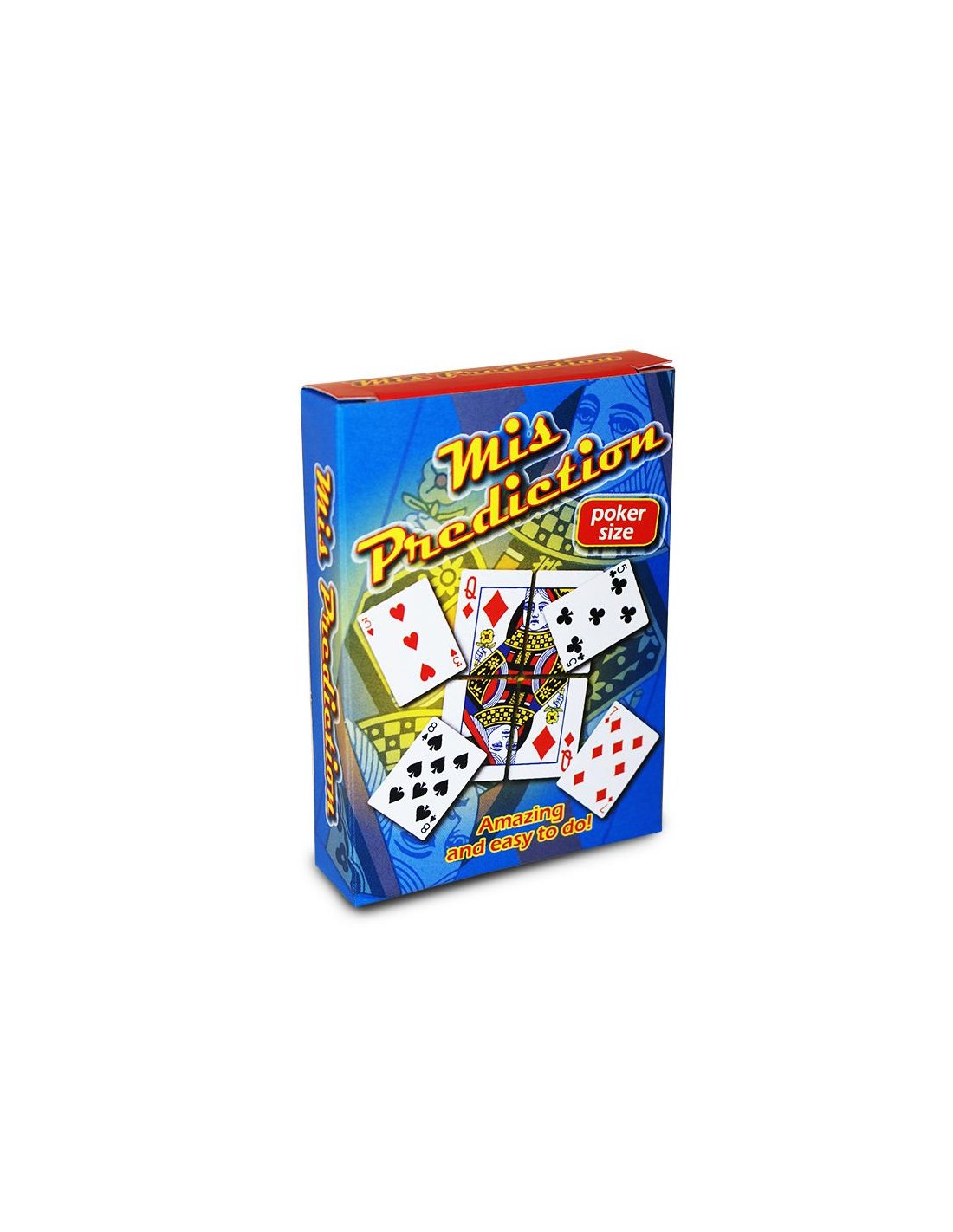 Il mago mostra una bustina che contiene una previsione e fa scegliere una carta ad uno spettatore. Poi apre la bustina da cui estrae una carta che mette sul tavolo affermando che è quella scelta. Ma sbaglia. Ripete la cosa per altre tre volte sbagliando sempre. Alla fine capovolge le quattro carte messe sul tavolo e tutti vedranno una carta gigante che raffigura quella scelta.