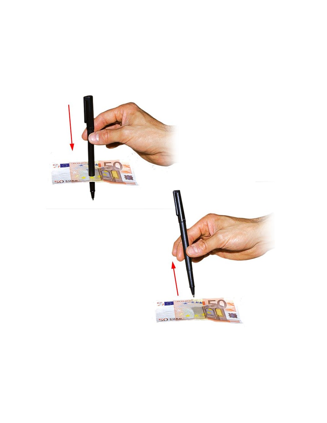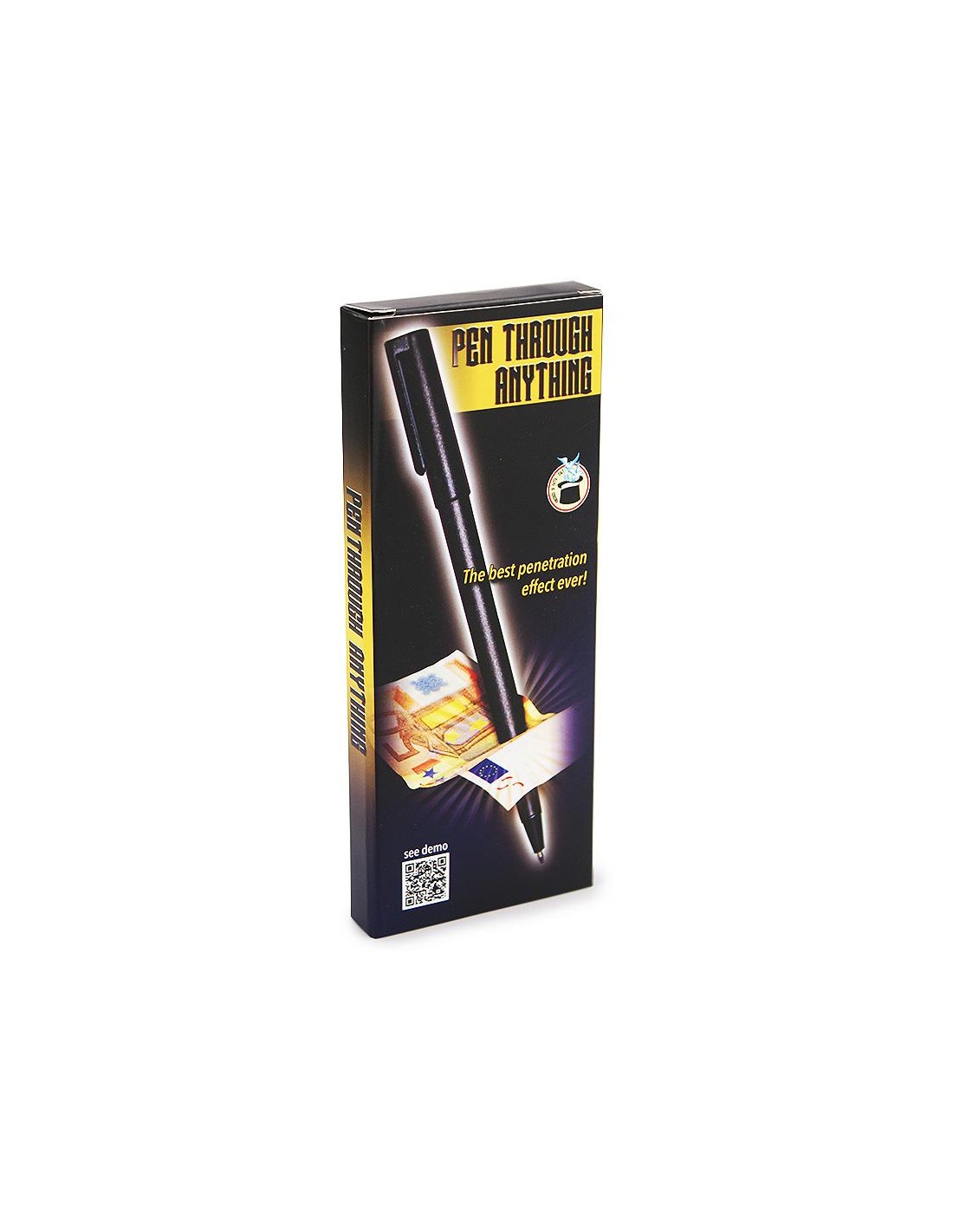 Chiedete una banconota in prestito ad uno spettatore. Mostrate la penna e, sotto gli occhi increduli del pubblico, usatela per trapassare la banconota. Tutti vedranno la penna fuoriuscire da parte a parte. Per finire tirate via la penna, fate un gesto magico e riconsegnate la banconota: non avrà nessun foro!