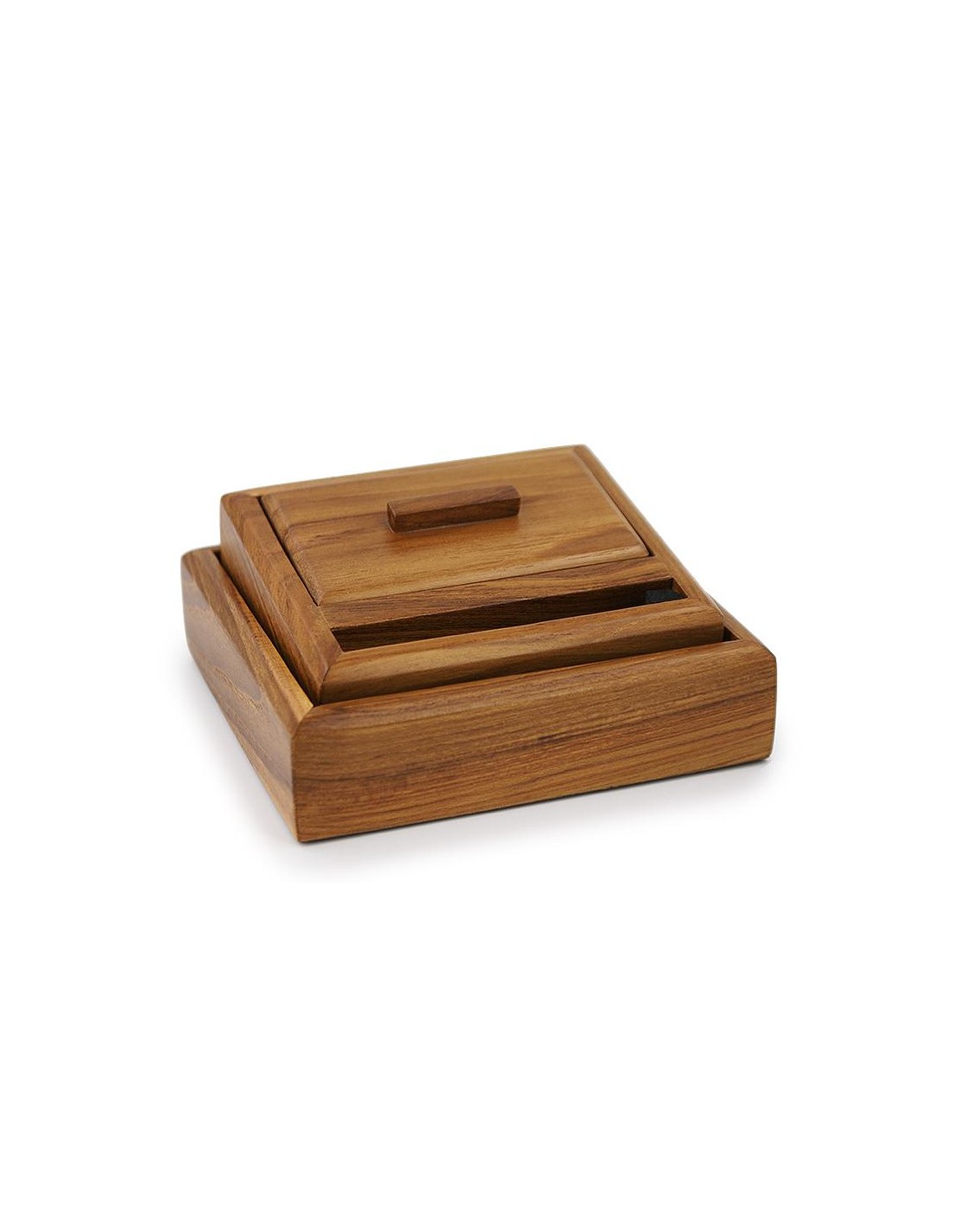 Ecco un portasigarette da tavolo decisamente elegante, realizzato con cura in legno di Teak, adatto per coloro che amano fumare con stile! Le sigarette fuoriescono dal portasigarette una alla volta, ed in modo quasi magico, si posizionano verticalmente così da poter essere comodamente prese, semplicemente premendo e rilasciando la parte superiore inclinata del portasigarette! Inoltre, essendo rigido, impedisce che le sigarette vengano schiacciate!