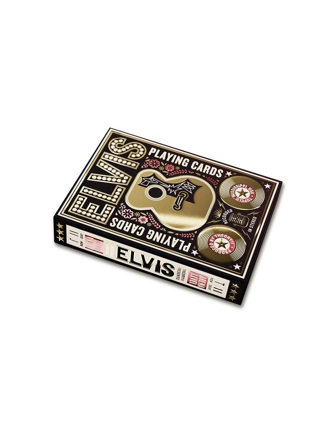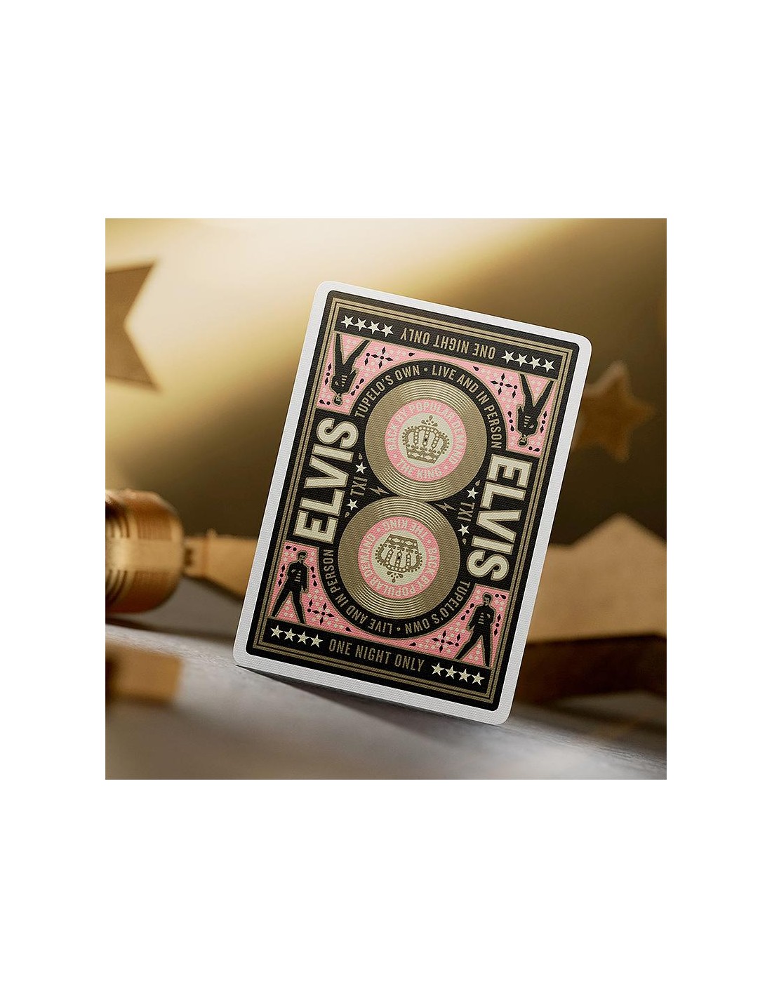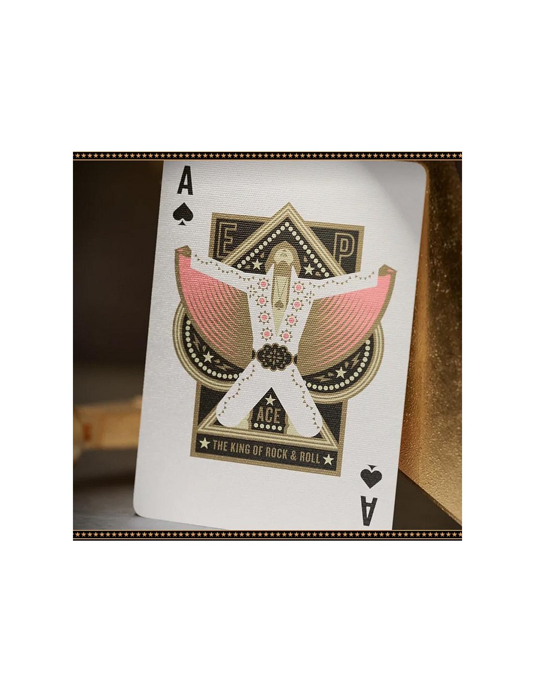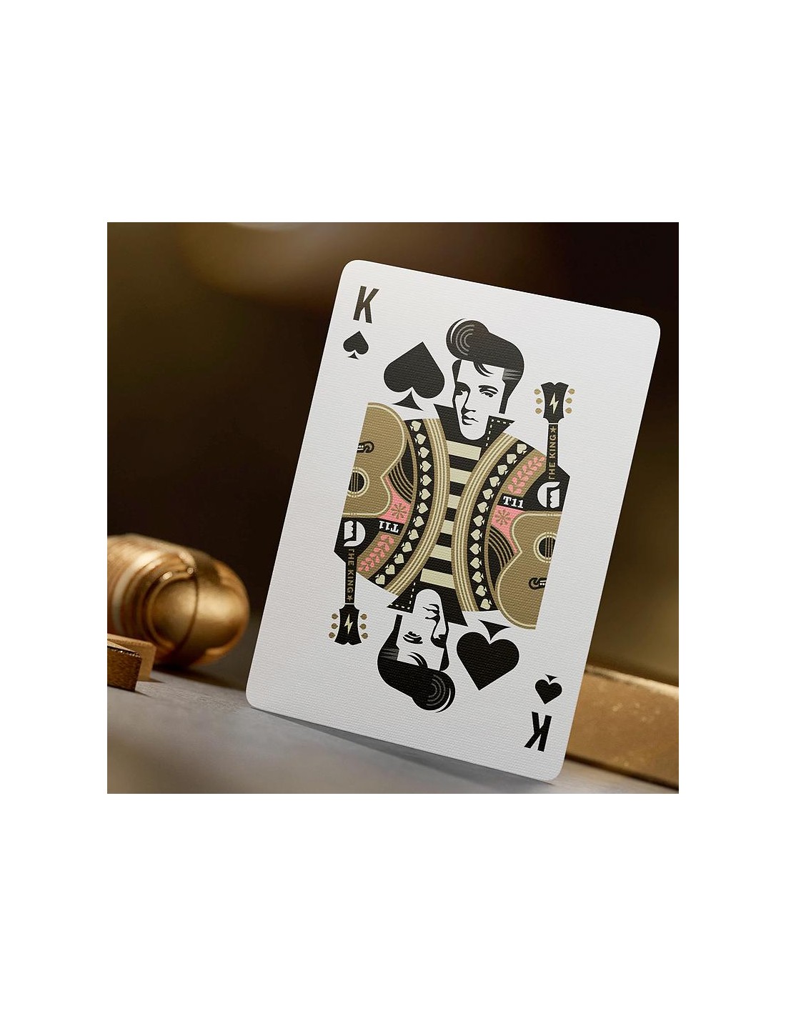 L'astuccio, il design del dorso e tutte le facce delle carte sono state realizzate appositamente per rendere omaggio al Re del Rock & Roll. Dai suoi primi giorni a Tupelo, Mississippi, fino a diventare un fenomeno mondiale, salite sul palco con Elvis ogni volta che tenete le carte in mano e le mettete in gioco.