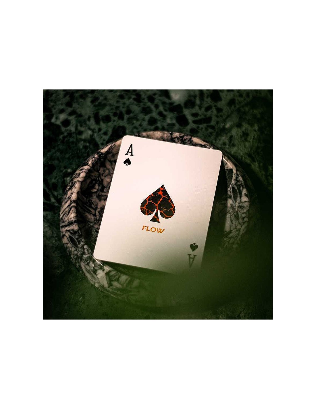 Nella comunità magica e di cardistry, la cosa più importante è il "FLOW". Lo spirito del fluire naturale delle cose che si riflette in effetti e "sleights" puliti. Questo concetto dello spirito è l'ispirazione del mazzo: rappresentare la combustione della lava che è la passione per tutti i cardists e maghi mentre si esibiscono. Flow Playing Cards in poche parole è l'amore per la magia e le fioriture con le carte.