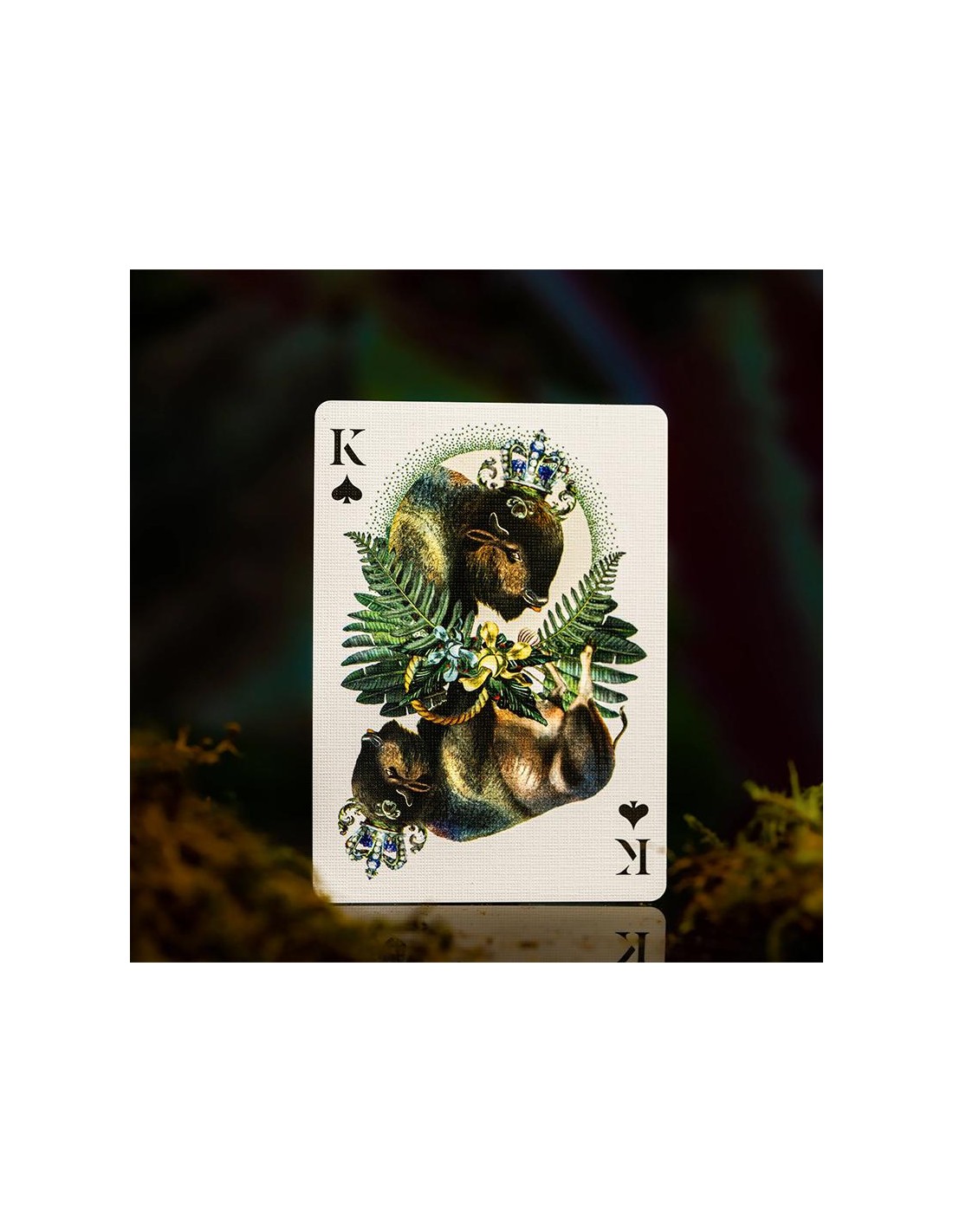 Il dorso di ogni carta presenta una splendida e lussuosa lamina dorata che dà nuova vita a ogni animale estinto presente all'interno, insieme ad una grafica completamente personalizzata che adorna le figure, gli assi e i jolly esplodono di colori e dettagli! L'astuccio presenta il caratteristico motivo Menagerie of Extinct Animal, lamina dorata premium e goffratura di buon gusto.