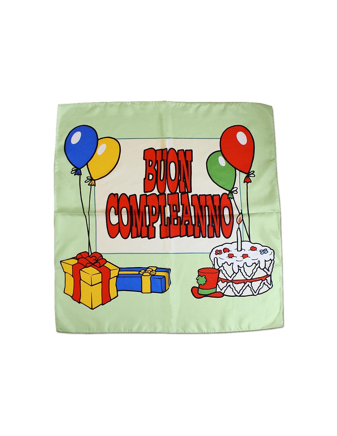 Meraviglioso foulard con la scritta Buon Compleanno, perfetto per farlo apparire da un sacchetto scambi, o altro attrezzo magico, durante un compleanno. Darà quel tocco di magia agli auguri per il festeggiato e... vi renderà memorabili!