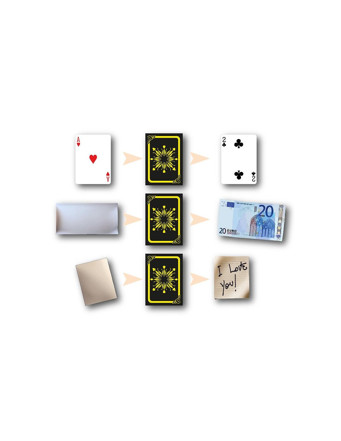 Trasformate una carta qualsiasi nella carta scelta dallo spettatore, un foglio bianco in una banconota o fate comparire un messaggio spettrale proprio davanti agli occhi dello spettatore!