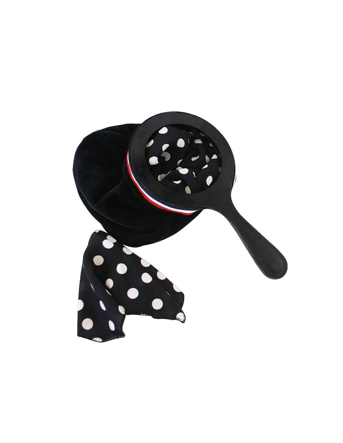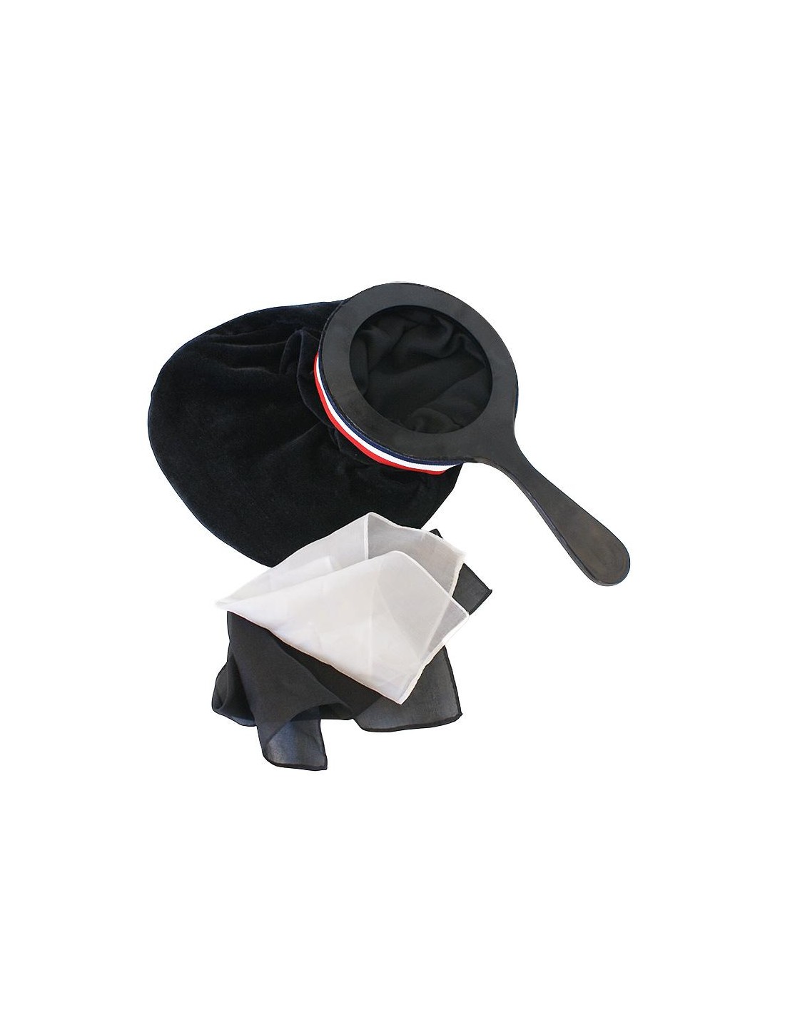 Il mago mostra un sacchetto nero, completamente nero sia all’esterno che all’interno. Con gesto elegante, inserisce al suo interno due foulard: uno nero e uno bianco. Un movimento magico… e dal sacchetto estrae un foulard nero a pois bianchi: i due foulard si sono fusi in un’unica creazione!