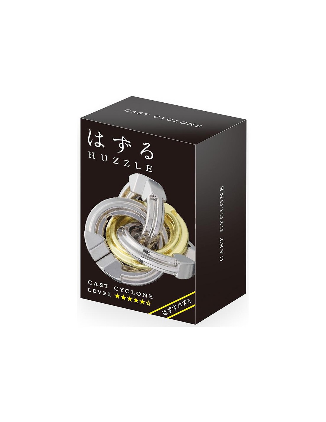 Cast Cyclone è un rompicapo in cui ogni pezzo si incastra con gli altri tre. Anche se inizialmente sembrano identici, in realtà ci sono due tipi diversi di pezzi. Il design di ogni anello è stato calcolato con grande precisione, limitando fortemente i movimenti possibili e creando un puzzle estremamente ingegnoso — il vertice di una lunga serie di sfide create da un vero maestro dei rompicapi.