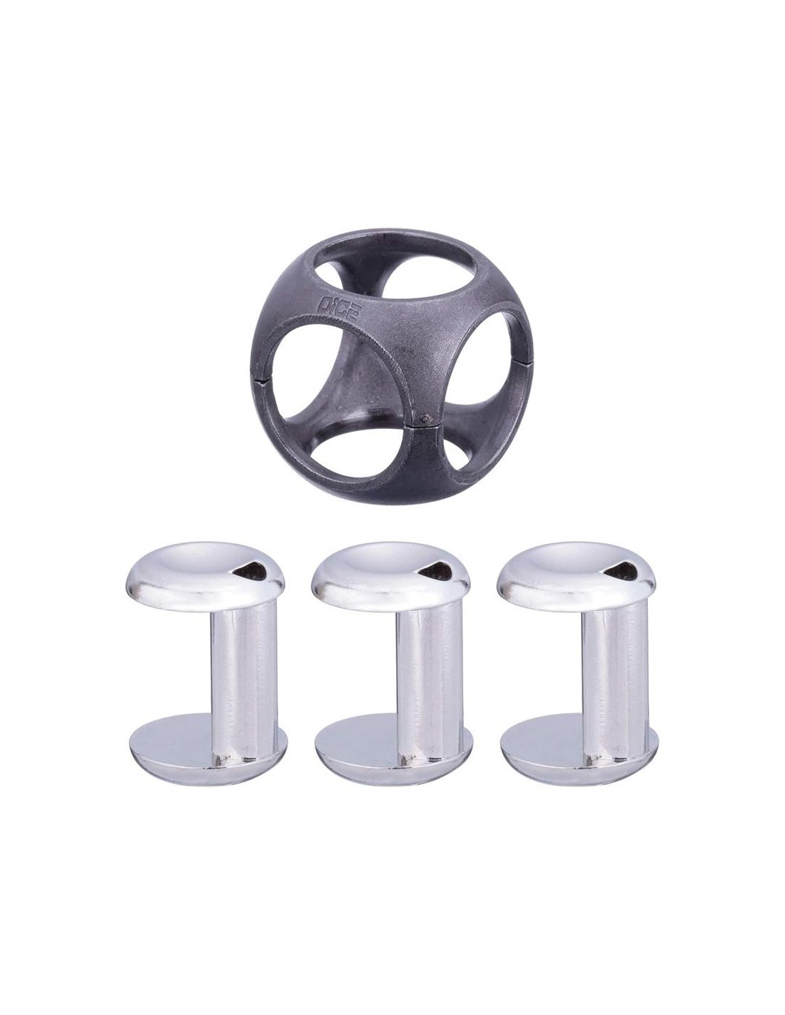 Tre pezzi con punti su di essi sembrano quasi pronti a liberarsi dalla loro cornice ispirata ai dadi. Tuttavia, tirando fuori un pezzo, un altro viene trascinato all'interno, rendendo difficile gestire questo intrigante rompicapo.