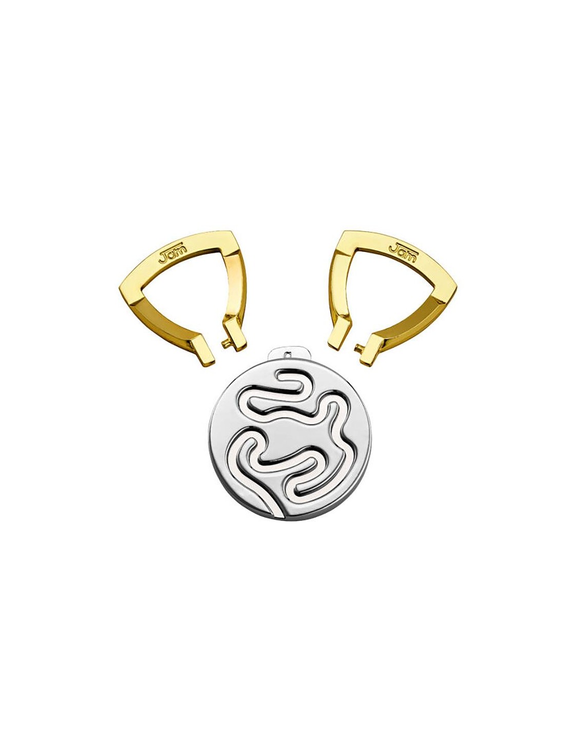 Due anelli scorrono liberamente lungo percorsi su un disco piatto e rotondo. Ogni tentativo di separarli porta inevitabilmente a uno che blocca l'altro.