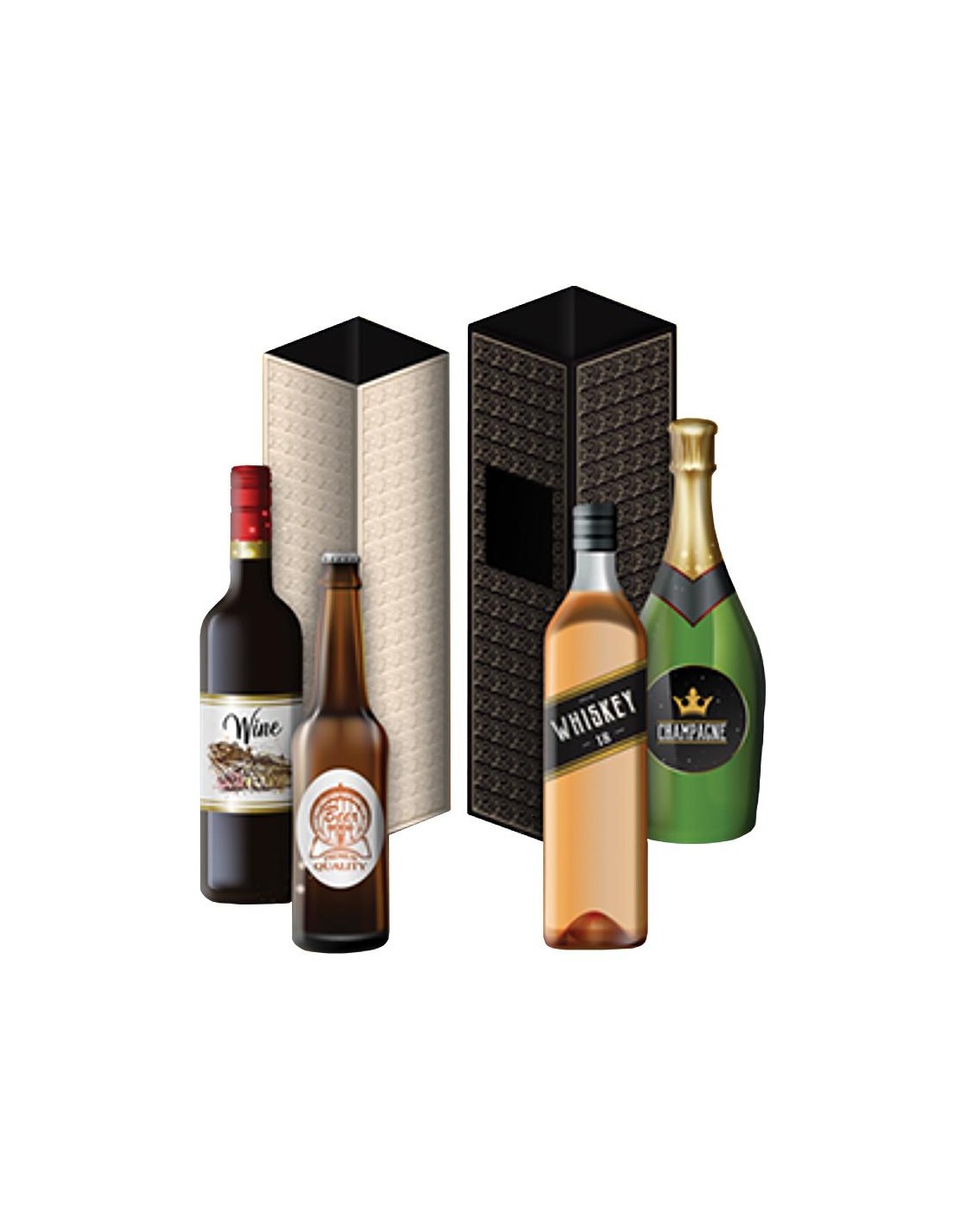 Il mago mostra due scatole di colore diverso, mostrando prima una vuota e poi anche la seconda vuota. Ora il mago fa un gesto magico e una bottiglia di qualsiasi tipo appare dall'interno.