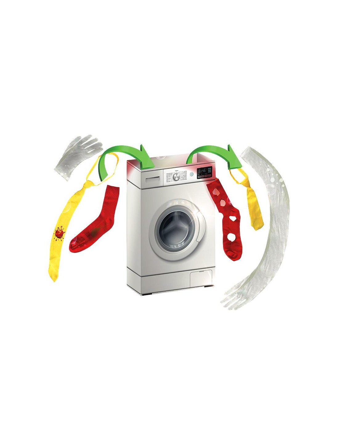 – 1 scatola speciale a forma di lavatrice (cartone spesso con magneti e meccanismo speciale all'interno).