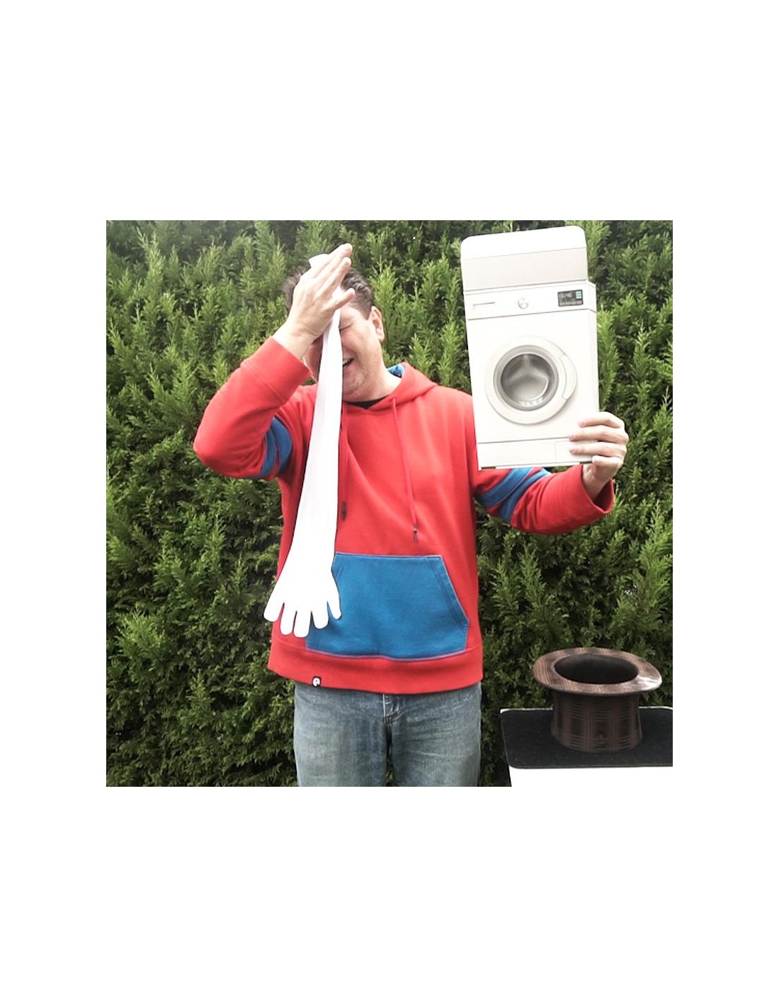Immaginate una mini lavatrice portatile che pulisce i vostri vestiti all'istante! Ma meglio leggere prima le istruzioni, o potrebbe finire male! Ispirato dal classico trucco Soft Soap, creato nel 1942 dal Dr. Howard B. Kayton, George Iglesias ha completamente reinventato questo effetto magico, cambiando non solo la storia, il materiale e la trama, ma anche il metodo: un sistema nuovissimo e davvero ingegnoso che lascerà tutti a bocca aperta. Una routine divertente e d'effetto per bambini, piena di magia, intrattenimento e tante risate!