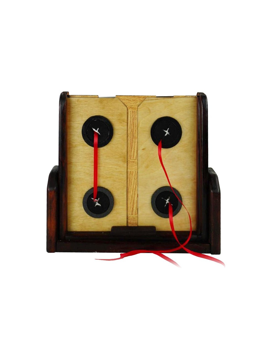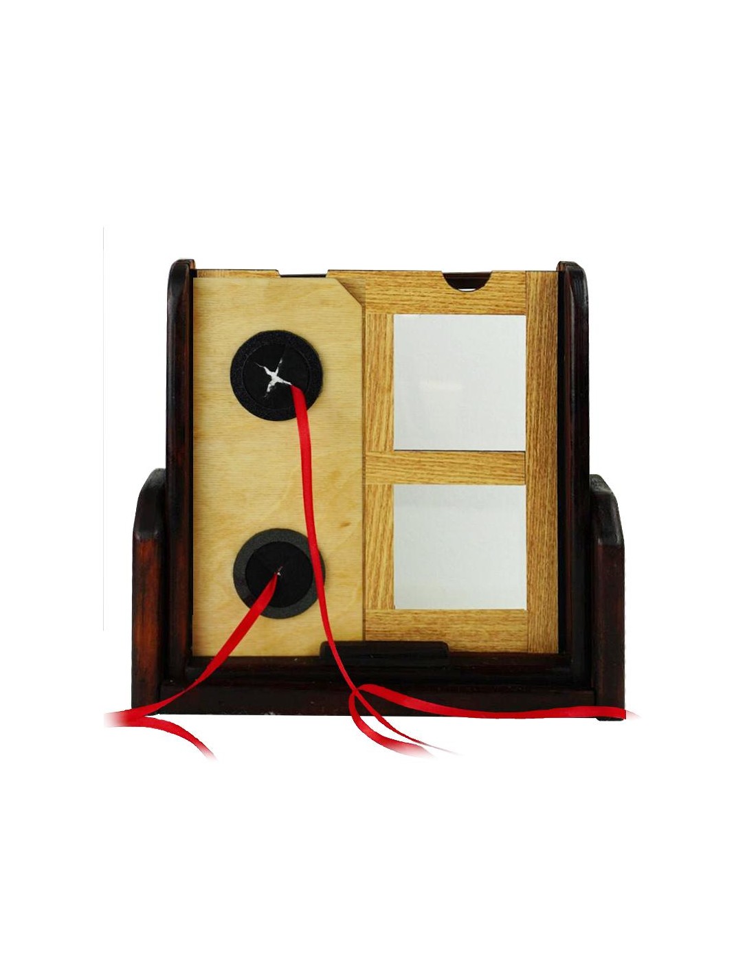 Una grande lastra di vetro viene infilata in un elegante supporto di legno che viene poi coperto da alcuni pannelli. Misteriosamente e senza alcuna possibile spiegazione, la lastra viene trafitta più volte da uno spillone di metallo a cui è attaccato un nastro.