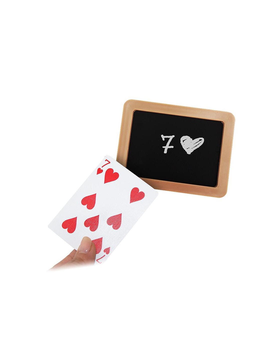 Il mago mostra da entrambi i lati due lavagnette nere. Uno spettatore con un gesso bianco firma un lato di una lavagnetta. Le lavagnette sono raccolte una sopra l’altra e appoggiate sul tavolo. Quindi, da un mazzo di carte lo spettatore ne sceglie una, la guarda e la rimette nel mazzo che viene mescolato e messo da parte. Per finire la lavagnetta superiore viene tolta e la firma dello spettatore viene verificata e… magia! Quando la lavagnetta viene capovolta sull’altro lato ci sarà scritto il nome della carta scelta!