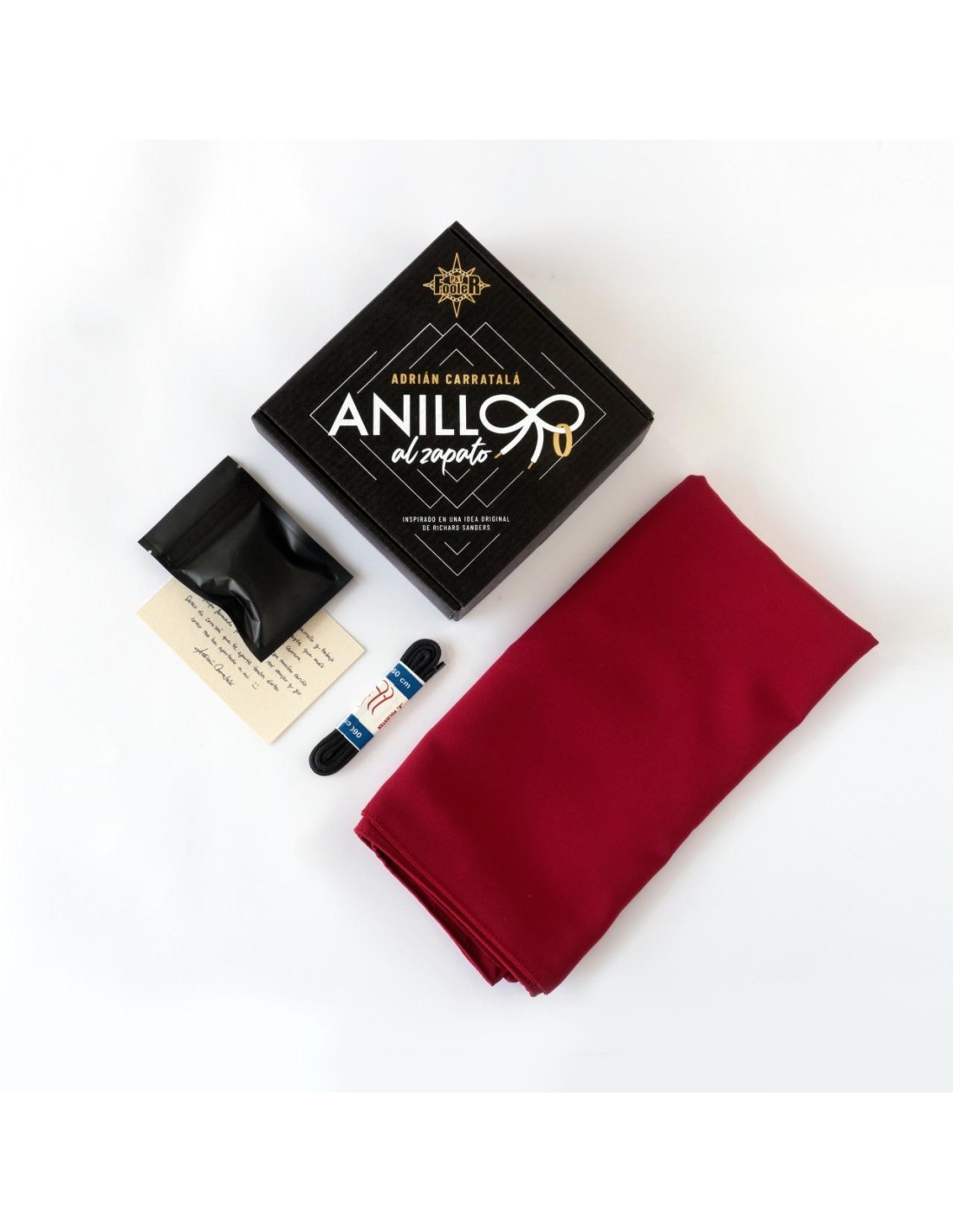 Effetto: un anello preso in prestito scompare sotto un fazzoletto e appare immediatamente legato al laccio della scarpa del mago!