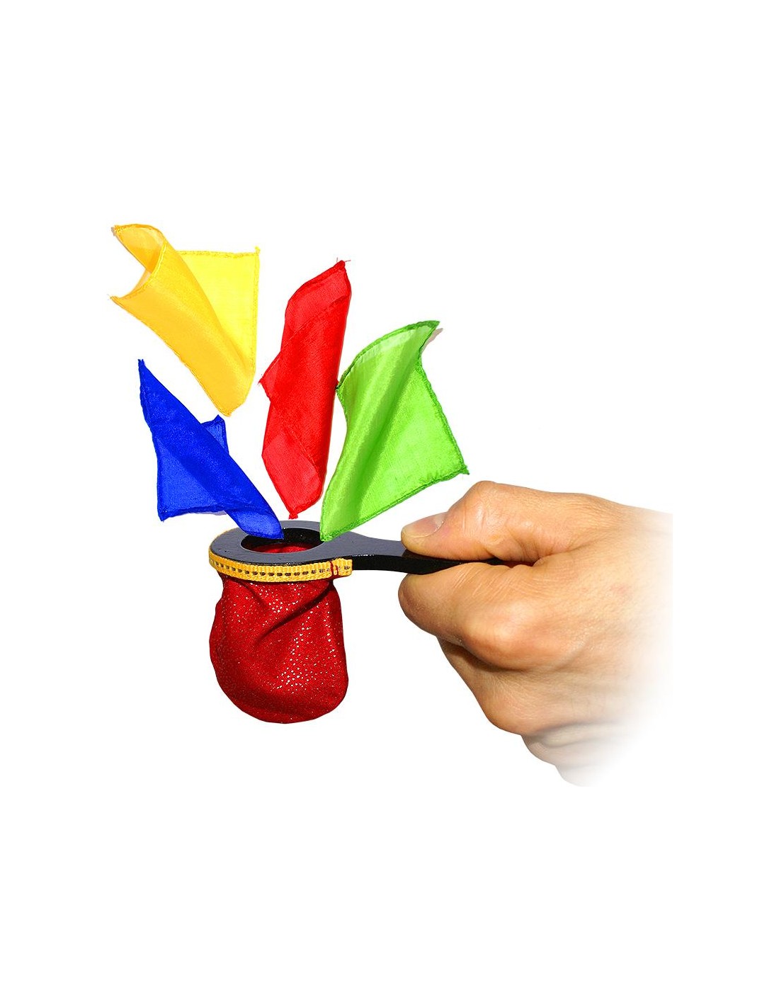 • Nella confezione troverete il sacchetto con l'indispensabile gimmick. Con la versione Plus forniamo anche 4 mini foulards di colore: rosso, giallo, verde e blu (cm 11 x 11) e il mini blendo a quattro colori (cm 22 x 22).