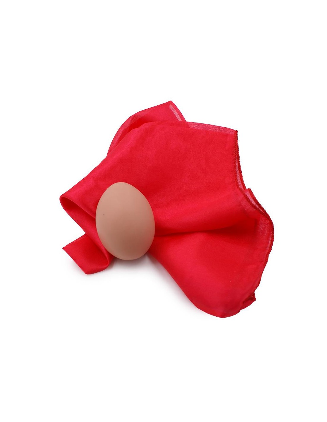 EFFETTO - Il mago mostra un foulard rosso e annuncia che sta per avvenire un miracolo. Lentamente e con calma, il foulard viene spinto nella mano sinistra… e si trasforma inspiegabilmente in un uovo.