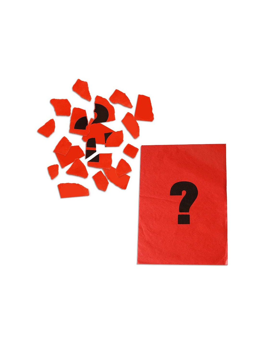 • La confezione contiene diversi fogli di carta velina rossa, ciascuno stampato con un grande punto interrogativo, sufficienti per circa 15 esibizioni. Una volta esauriti, la routine può essere facilmente riproposta utilizzando normale carta velina acquistata in cartoleria: basterà disegnarvi sopra il punto interrogativo con un pennarello adatto (o un altro simbolo).