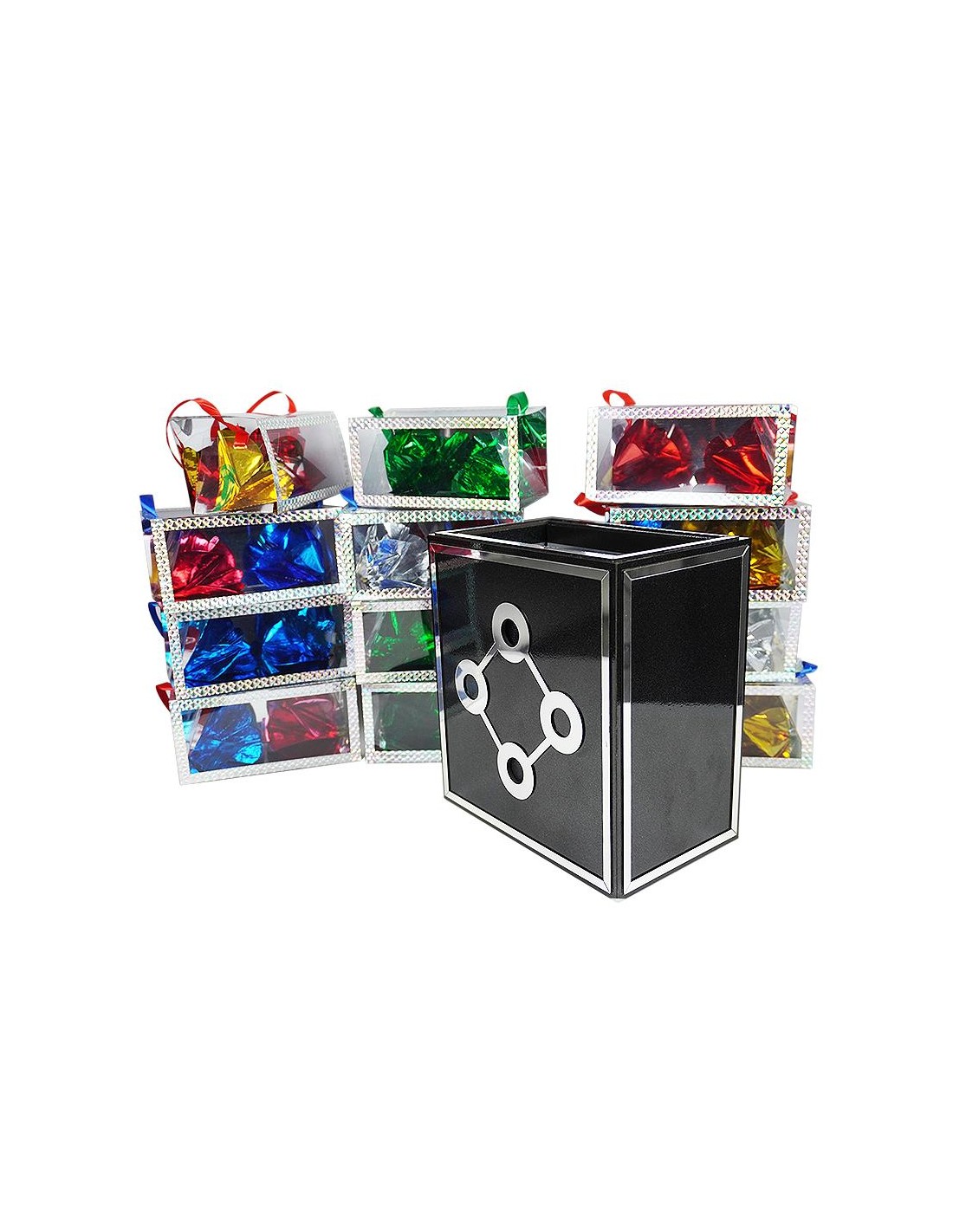 Il mago mostra una cornice vuota agli spettatori. Mettendo la mano nella cornice, tira fuori una bellissima scatola trasparente piena di fiori di carta, con sorpresa di tutti. Poi, ne fa apparire una seconda! Non ha ancora finito: in totale, ne può far apparire ben 12!